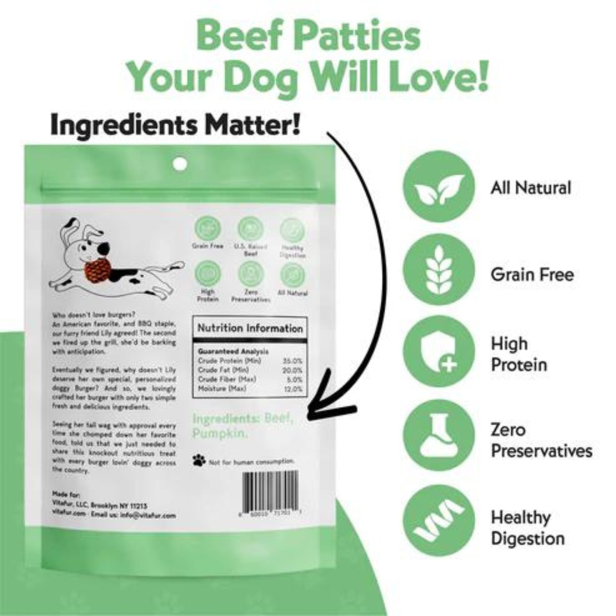 $11.32 USDVitafur Barkin Burger Dog 4oz. Nature's Beef Pumpkin