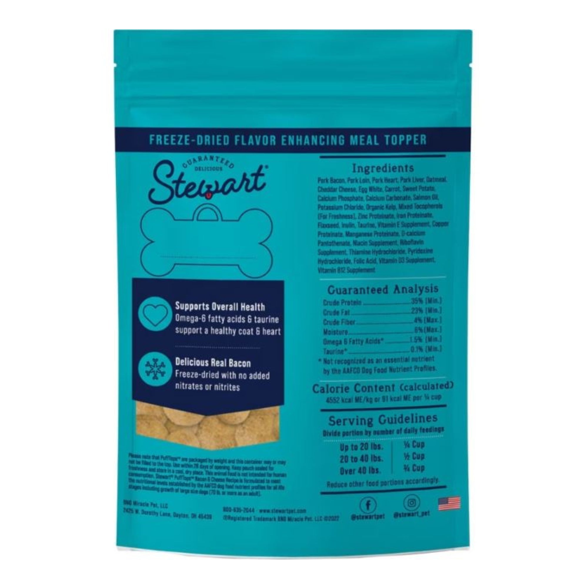 Stewart Puff Tops Freeze Dried Dog Food Topper Bacon & Cheese, 1ea/6oz. Stewart Puff Tops Freeze Dried Dog Food Topper Bacon & Cheese, 1ea/6oz.