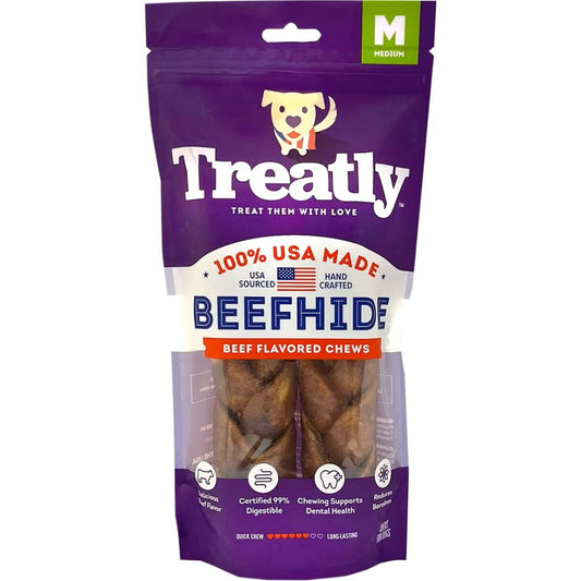 Treatly 100% USA Beefhide Bones & Rolls Natural Medium-4 Pk