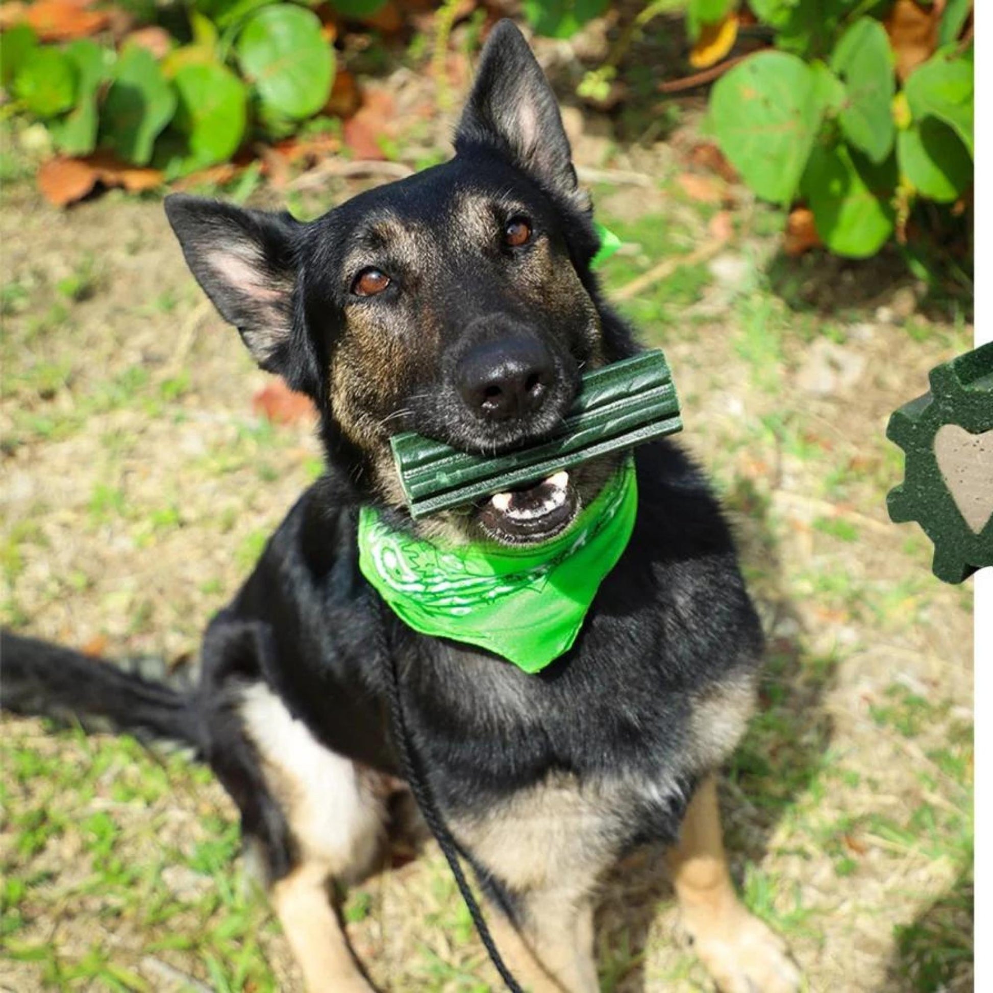 Our Extreme Clean™ Brushless Toothpaste™ dental chews are long-lasting and have a unique texture that reduces plaque and tartar for an even deeper clean than your pup’s daily dental chew. Its extreme ridges help clean in between the teeth and along your pup’s gumline, and a chewy toothpaste center helps polish teeth. Plus – added aromatic spices for even more breath-freshening then our original Brushless toothpaste. Ranked Hard on our DENTA-METER™, these are great for super chewers!