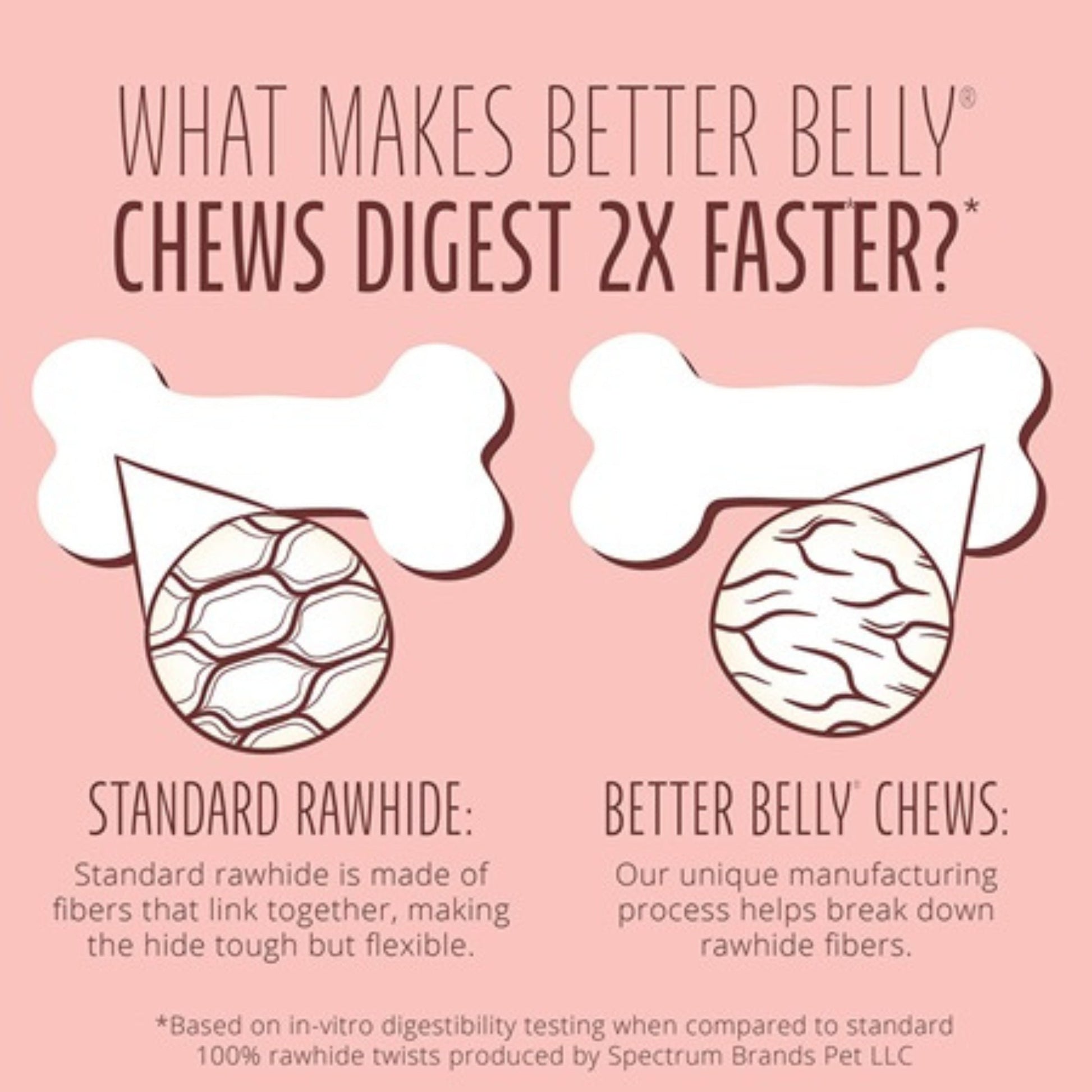 DIGESTS 2X FASTER*: Our unique manufacturing process helps break down rawhide fibers for easier digestibility