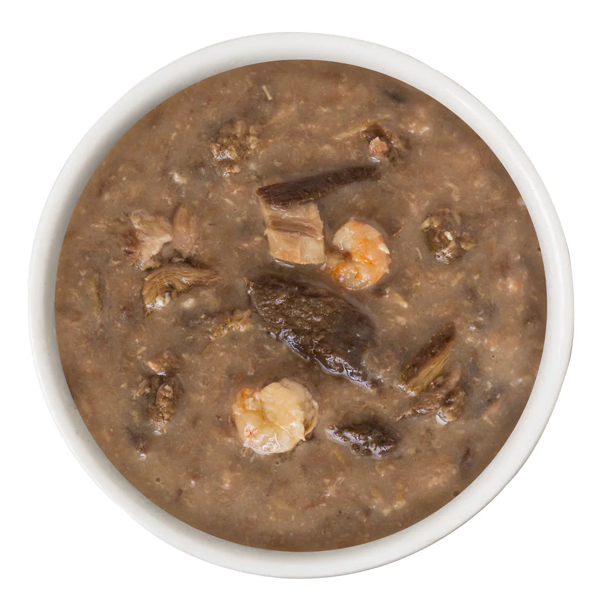 Chicken Broth, Chicken, Tuna, Shrimp, Natural Flavor, Potato Starch, Guar Gum, Calcium Lactate, Tricalcium Phosphate, Choline Chloride, Taurine, Zinc Sulfate, Vitamin E Supplement, Thiamine Mononitrate (Vitamin B1), Niacin Supplement (Vitamin B3), Calcium Pantothenate, Vitamin A Supplement, Manganese Sulfate, Riboflavin Supplement (Vitamin B2), Pyridoxine Hydrochloride (Vitamin B6), Ferrous Sulfate, Copper Sulfate, Vitamin D3 Supplement, Folic Acid, Vitamin B12 Supplement, Potassium Iodide, Menadione Sodium Bisulfite Complex (Source of Vitamin K)