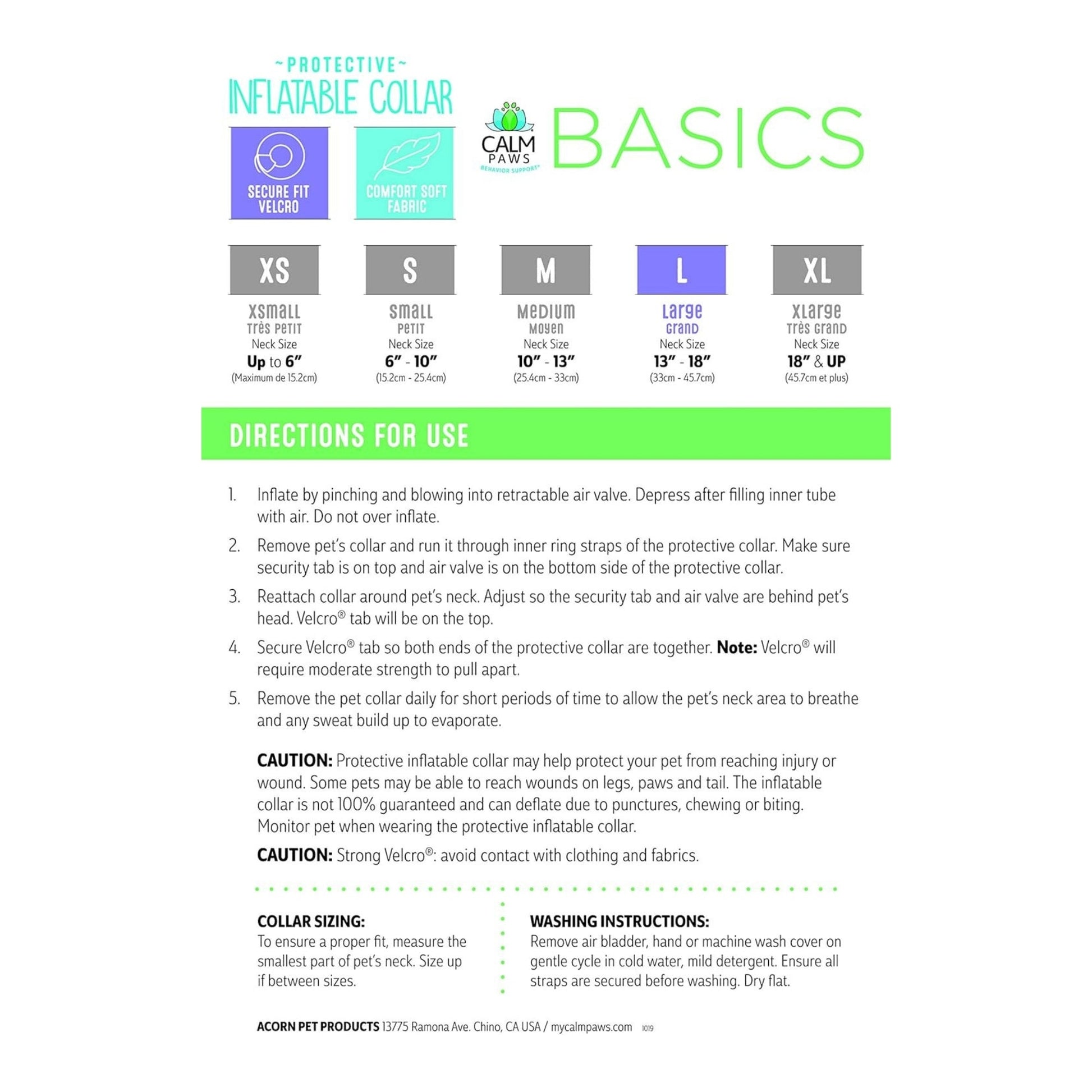 Make cone time more comfortable with the Calm Paws Basic Inflatable Collar. This velvety inflatable collar helps protect wounds, rashes and incisions as they heal without the bulk and discomfort of a big plastic cone. It secures easily around your buddy’s neck with the fuzzy fastener and stays in place with the included chest security strap. Use it with the included Calming Disk for essential oil-enhanced anxiety relief and turn the cone of shame into a ring of relaxation!