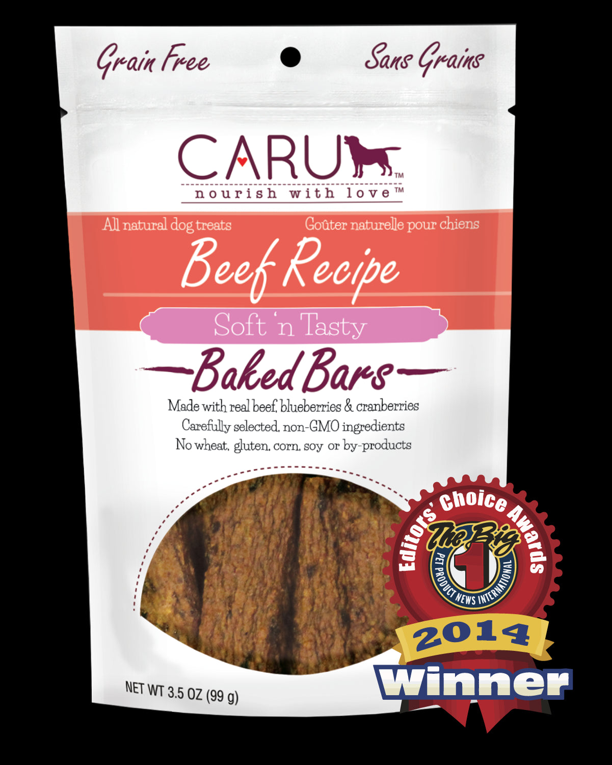 At Caru, were as passionate about the health and happiness of pets as you. Thats why we start with real meat or poultry as the first ingredient (no ingredients from China), and why these award-winning Soft n Tasty dog treats dont contain any wheat, gluten, corn, soy or animal by-products. We only use non-GMO ingredients. Each snack is packed with high quality protein for strong muscles and a healthy heart, along with healthy blueberries and cranberries. Plus, these products are carefully prepared in small batches and naturally preserved.