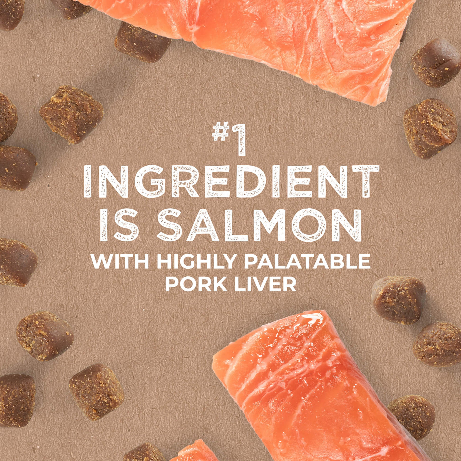 Salmon, barley flour, potato flour, maple syrup, glycerin, tapioca starch, natural flavor, gelatin, salt, phosphoric acid, sorbic acid (as preservatives), citric acid, mixed tocopherols (as preservative), rosemary.