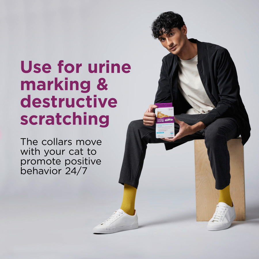 The Comfort Zone Cat Calming Collar helps your cat feel happy and relaxed while reducing unwanted behaviors. The collar encourages positive behavior; use for urine marking and scratching and to reduce stress. The collar is a great way to help create a calming environment for your cat. The Comfort Zone Calming Collar is drug-free and releases calming pheromones close to your cat wherever he may go.