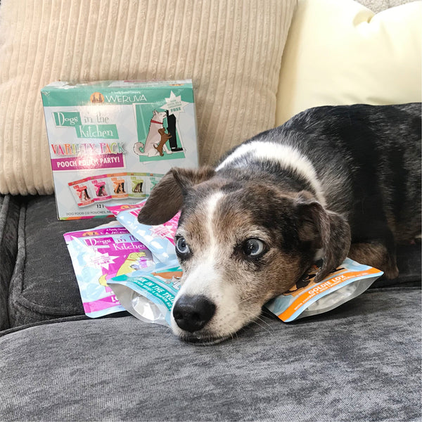Its paw-ty time! The Pooch Pouch Party Variety Pack gives your dancing doggo two each of their favorite Dogs in the Kitchen pouches: