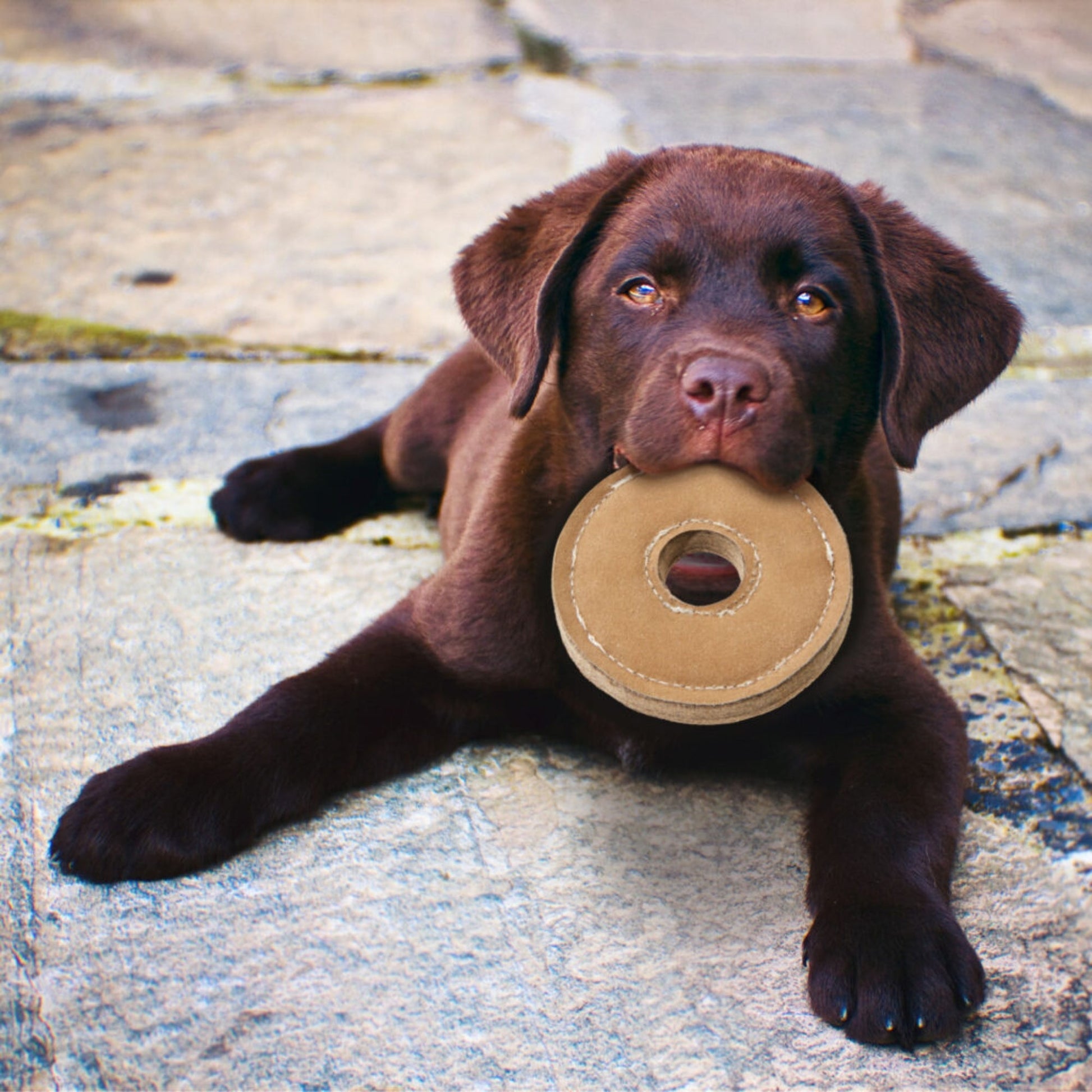 Dura-Fused Chunkies combine real leather with wool felt fabric in between for added thickness and strength. Stitching through all layers with heavy duty thread adds extra durability. Popular ring shape dog love and is easy to pick up!
