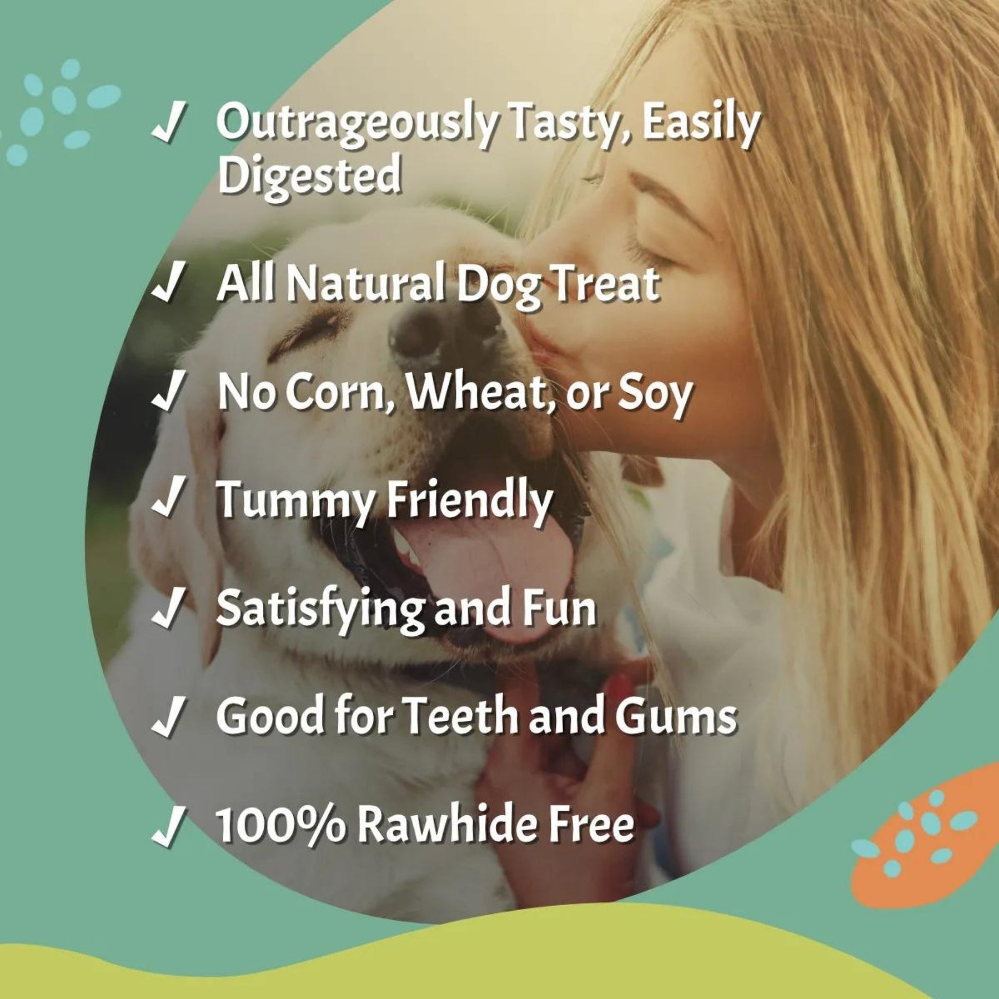 These chews are intended for intermittent or supplemental feeding only and are not a substitute for your dog’s main meal. As with all chews, to help prevent choking, always supervise your pet when feeding. Discard any smaller pieces that can be swallowed, as small pieces can cause choking. Feed on an easy to clean surface. Be sure to reseal the bag after opening. Store in a cool, dry place. Always provide access to fresh, clean water.