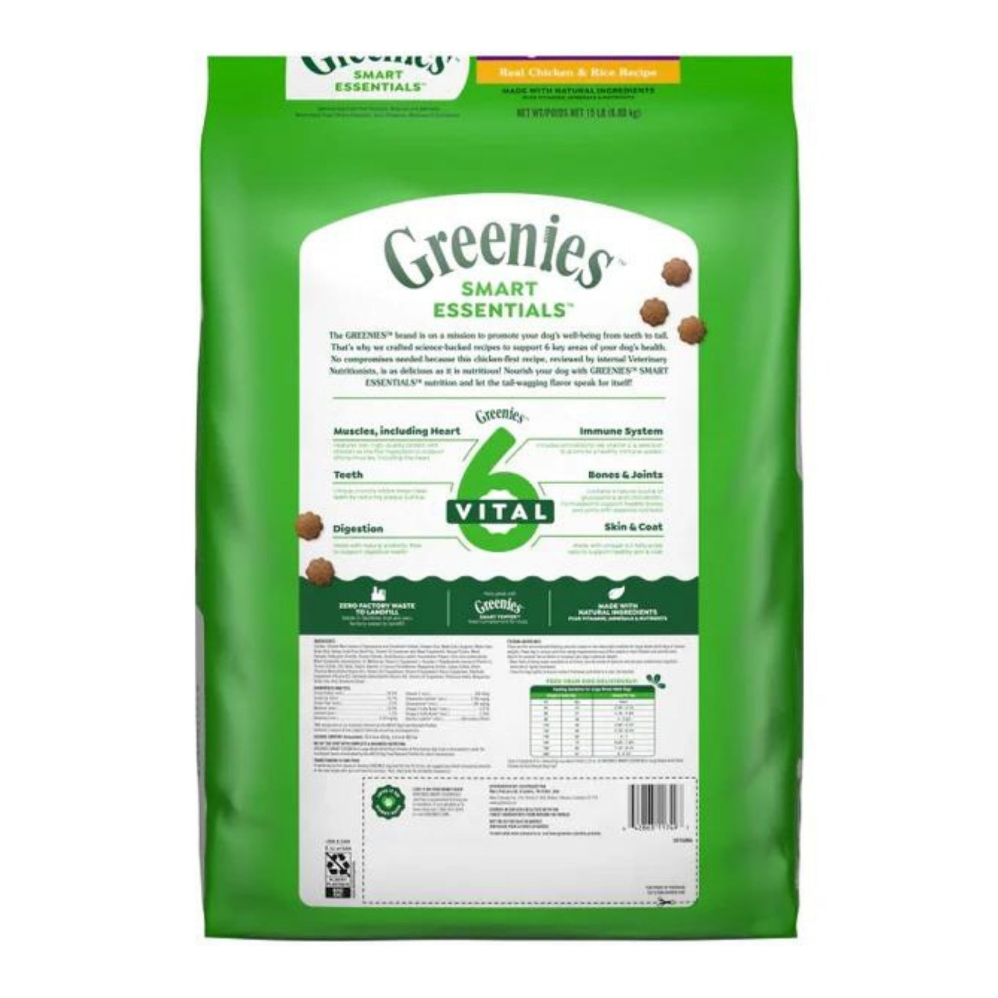 Crafted to support 6 key areas of your canine companion’s health: immune system, bones & joints, skin & coat, muscles including the heart, digestion and teeth. This high protein dry dog food for large breed adult dogs features real chicken as the #1 ingredient. Made without corn, wheat, soy, or chicken by-product meal and no artificial flavors, colors, or preservatives.* Trace amounts may be present due to potential cross-contact during manufacturing Contains a natural source of glucosamine and chondroitin to help support healthy bones and joints in your adult large breed. Greenies Smart Essentials Adult Large Breed High Protein Dry Dog Food is made with natural ingredients plus vitamins, minerals & nutrients.