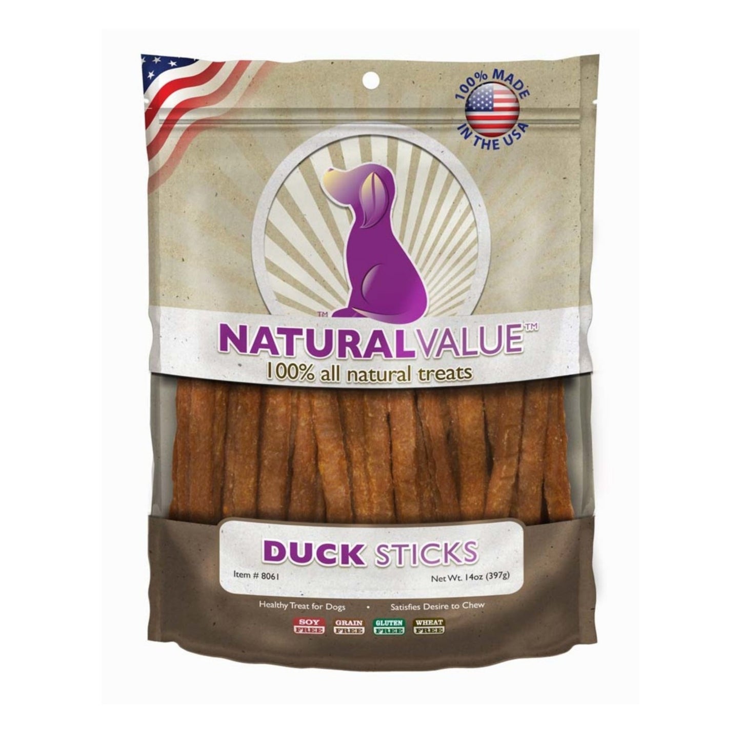 Natural Value Duck Sticks are made in the U.S.A., and are proof that healthy, safe U.S.A. made dog treats can be affordable. Cooked on open grilling racks to reduce fat and give them a delicious flavor, our Duck Meat Sticks are sure to be your dog?s favorite treat. Since they?re made in the U.S.A., they should be your favorite too.