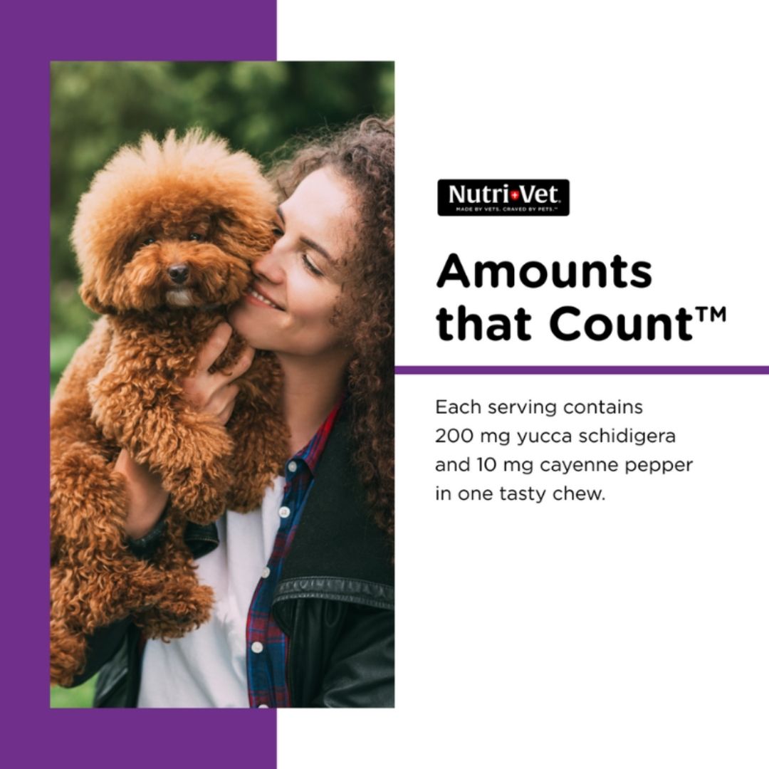 Nutri-Vet Nasty Habit Chewable Tablets for dogs are an effective, solution designed to help adult dogs and puppies kick the bad habit of eating feces. Veterinarian formulated, these liver-flavored chewables are easy to disguise in your dog’s favorite food.