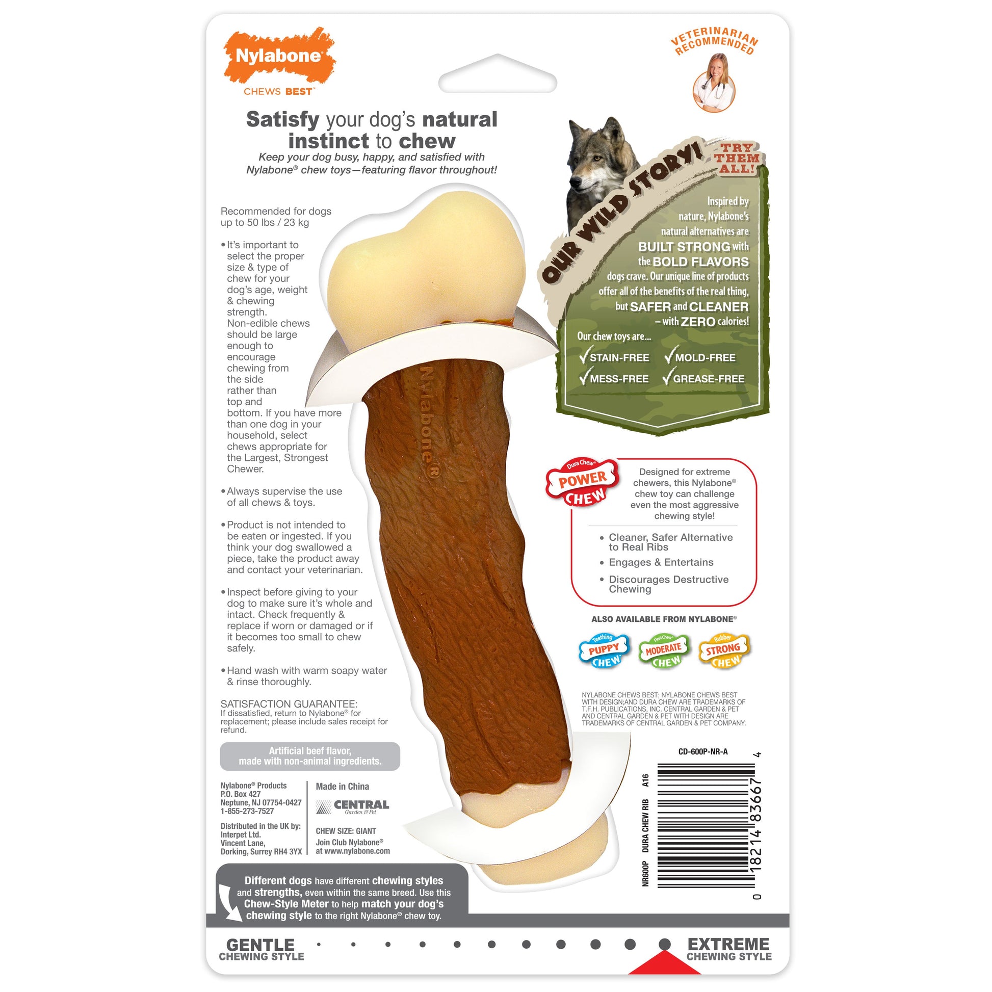 Nylabone Power Chew Marrow Bone Alternative Dog Chew Toy Beef, 1ea/Large/Giant Up To 50 Lbs. 1 ct