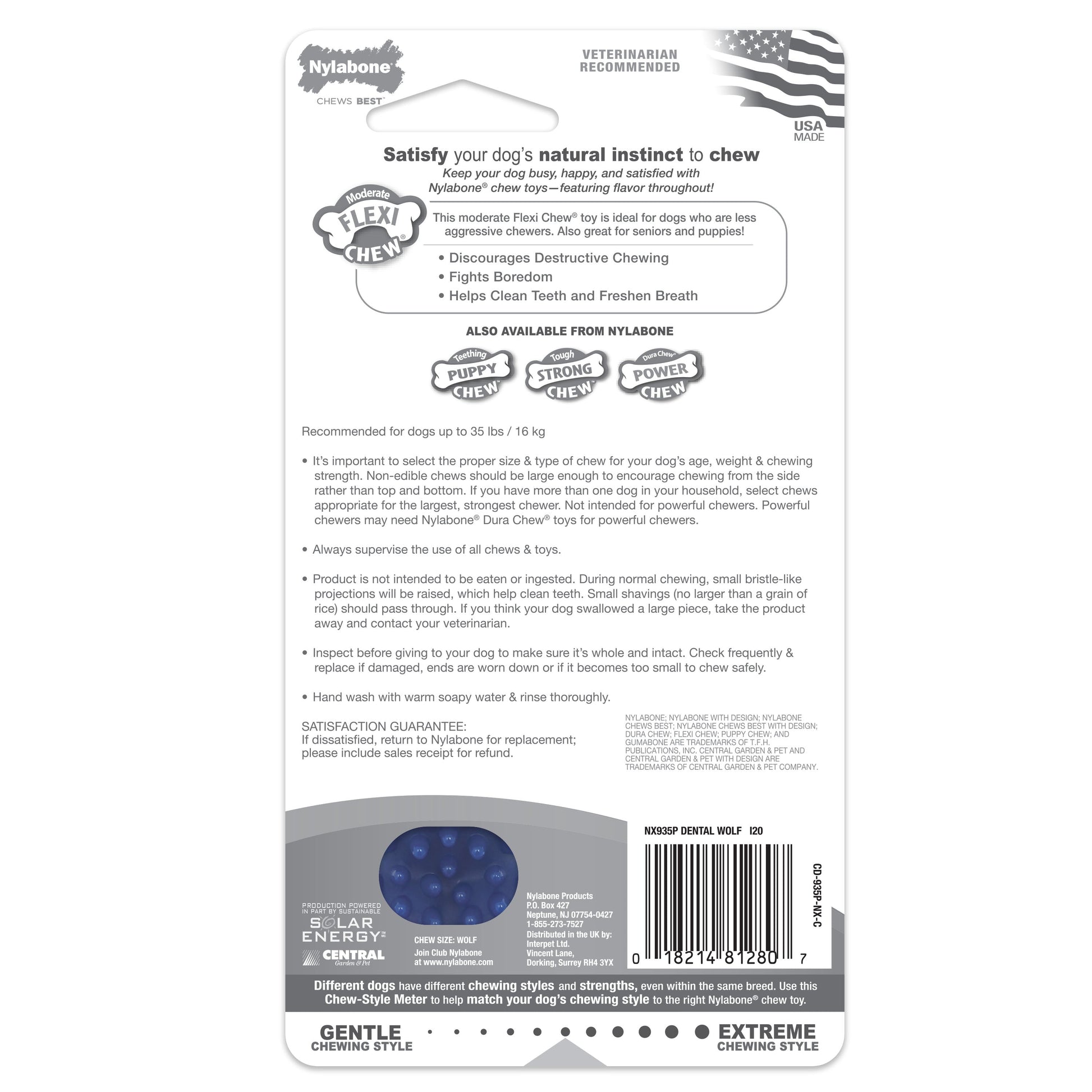 Nylabone Moderate Chew Textured Dog Dental Chew Toy Chicken, Blue, 1ea/Medium/Wolf Up To 35 Lbs. 1 ct