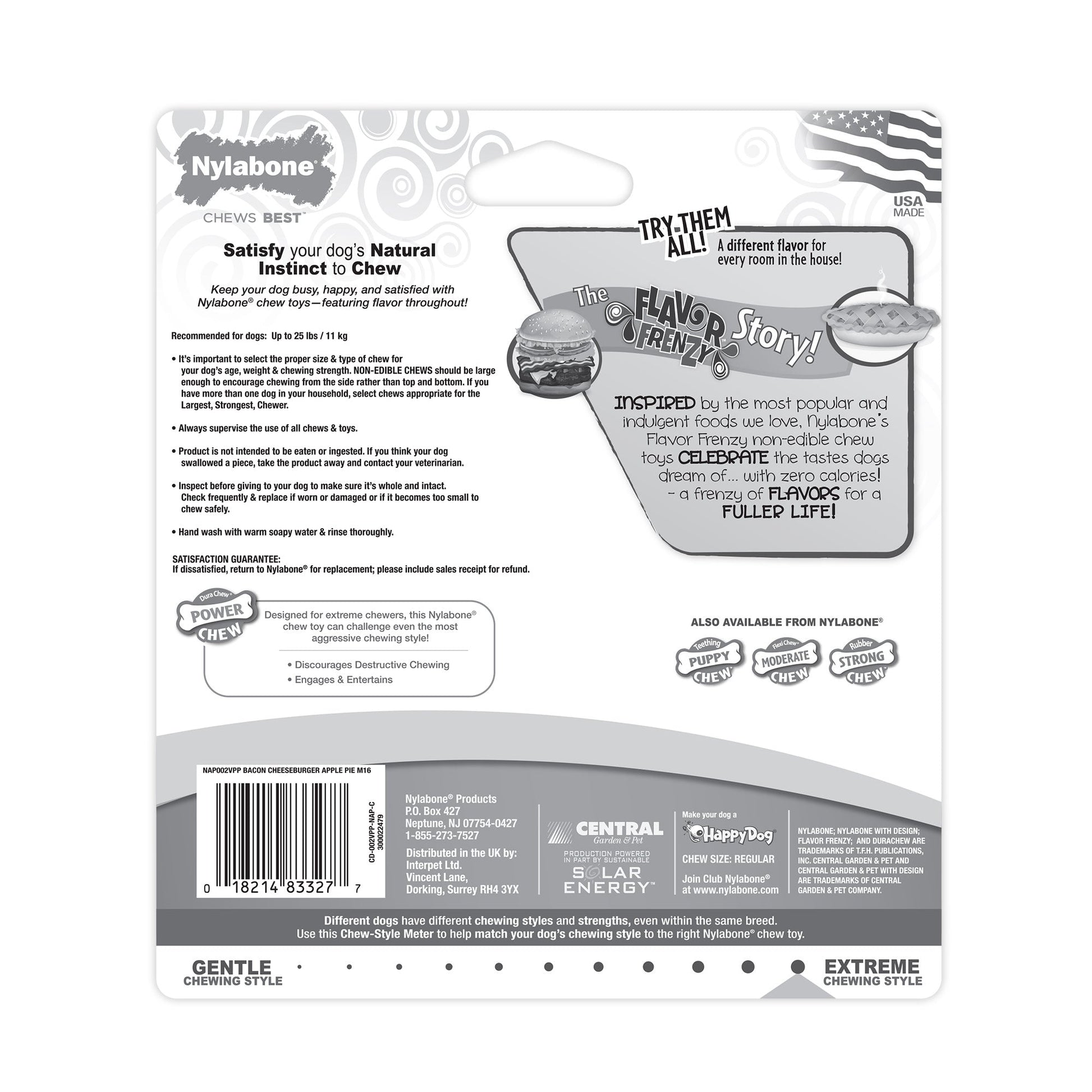 Nylabone Power Chew Flavor Frenzy Durable Dog Chew Toys Twin Pack Bacon Cheeseburger Apple Pie, 1ea/SMall/Regular Up To 25 Ibs. 2 ct