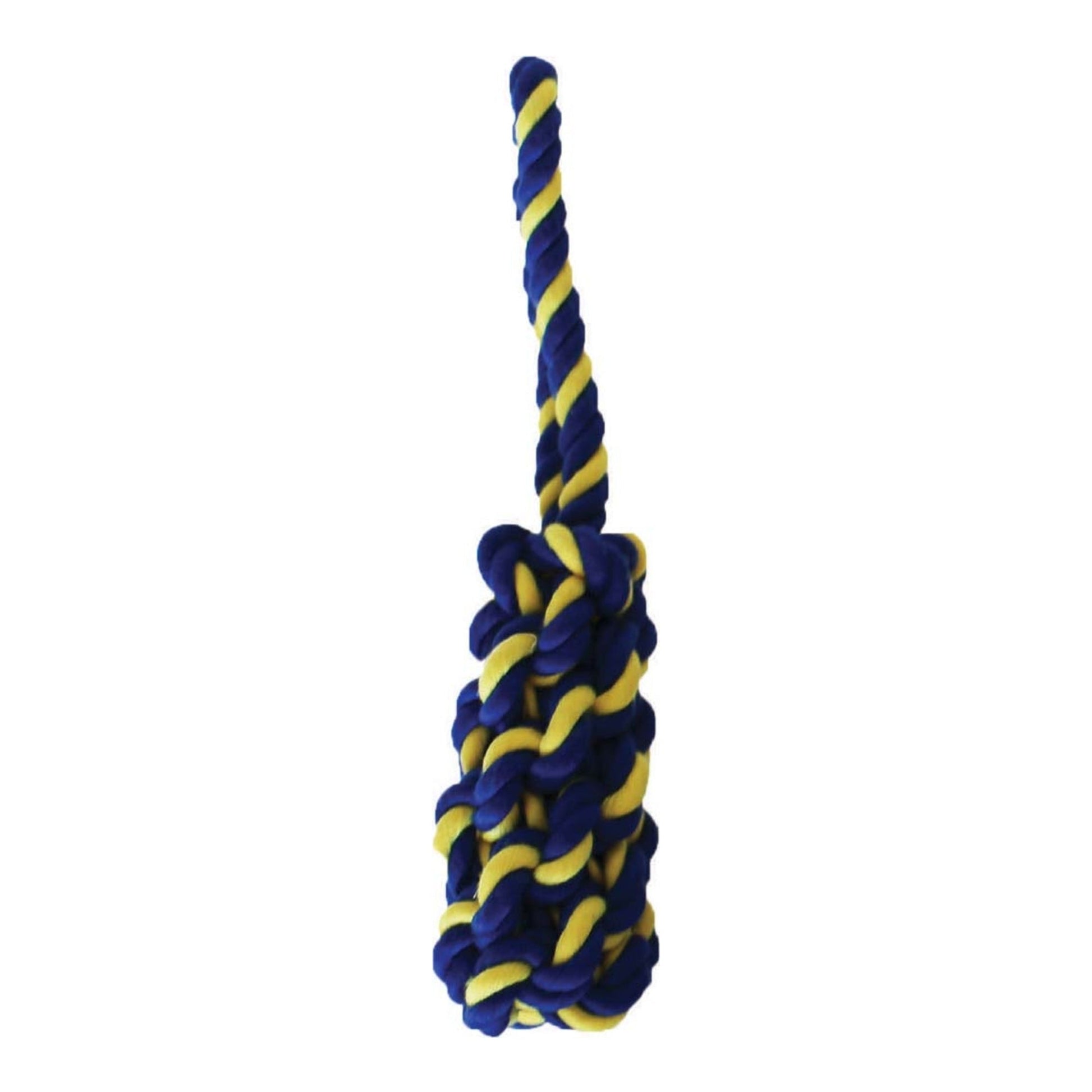 Twisted Chew Mini Bumper Rope is a great interactive toy. Made from 100% cotton and is a fun retrieval toy for hours of enjoyment. The Blue and Yellow rope are high visual colors making it easy for dogs to see. br/>Sold in Quantity of: 1
