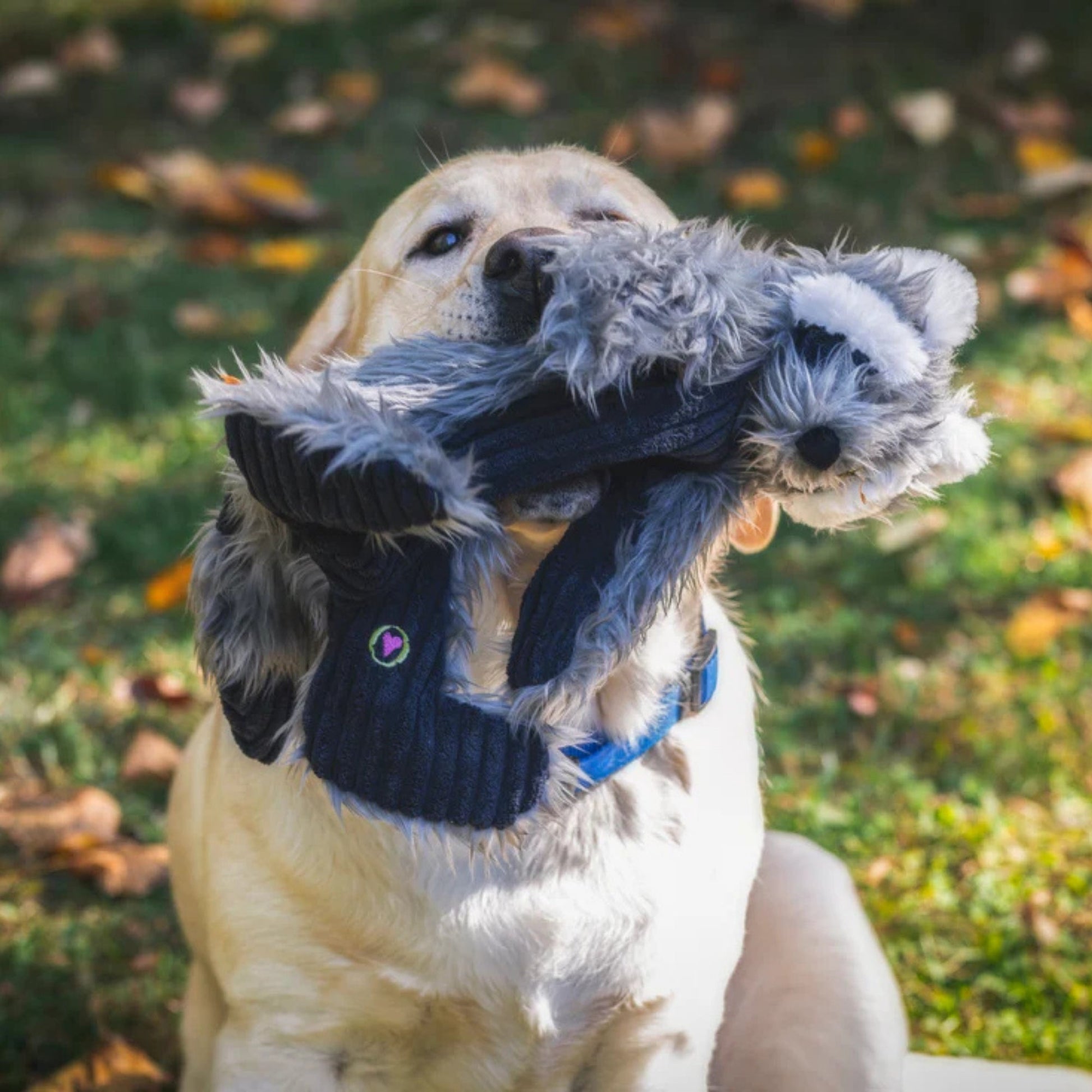 Introducing HuggleHounds® X-Brace™, a new dog toy line that satisfies multiple play styles, tugging and snuggling. With our exclusive 2-layer Tuffut Technology® lining and our new poly cotton X-Brace™ skeleton, these toys will withstand multiple dogs' rowdiness and become the perfect cuddly companion. Covered in the softest plush, minimal stuffing in the head, crinkle paper, and a squeaker, this is the perfect dog toy to stimulate all the natural doggie senses.