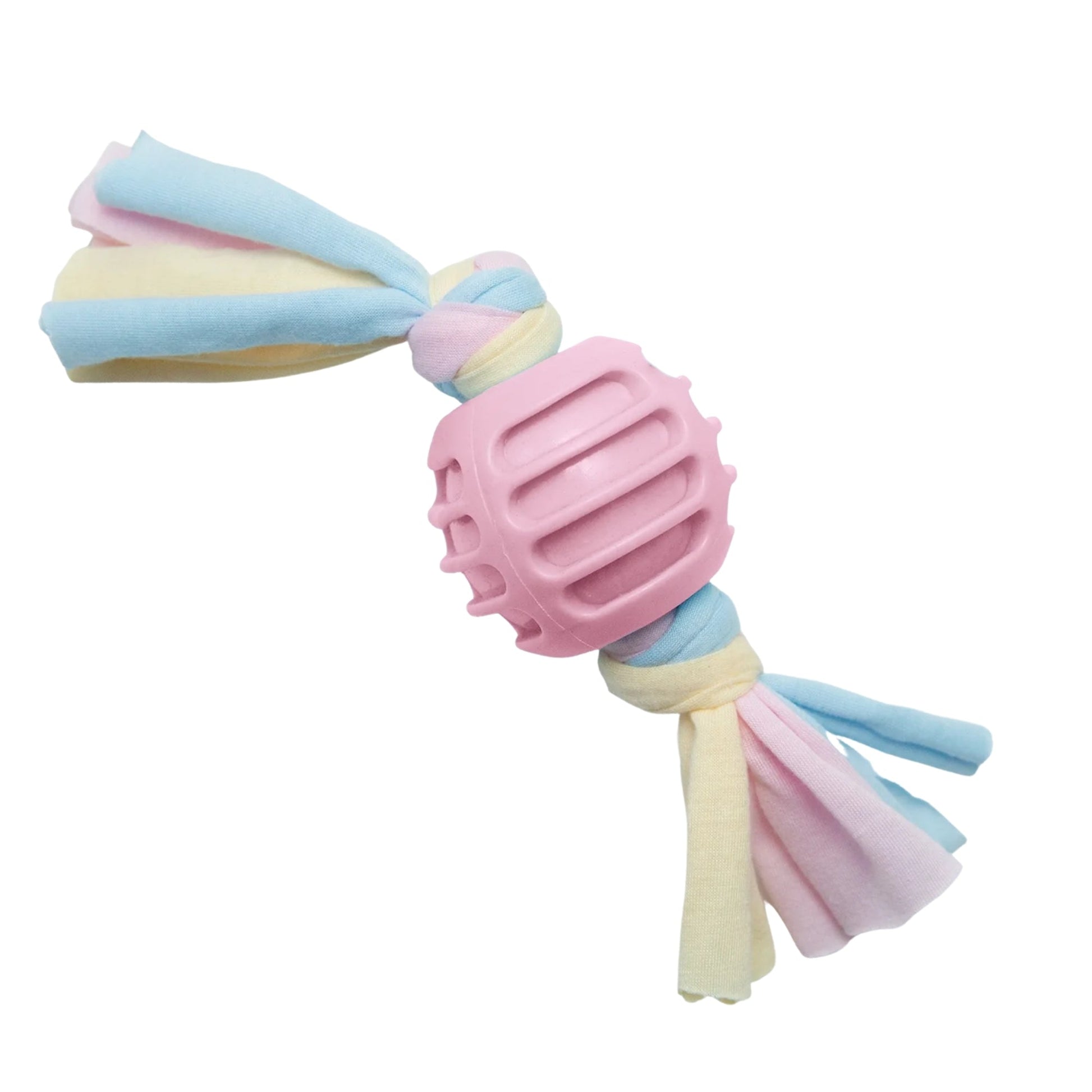 These Eco friendly TPR toys are perfect for your little pup who loves to chew & play fetch. These toys have a braided cotton rope attached for additional play. Designed to aid in dental health. Perfect for the lil chewer. Made from eco friendly materials