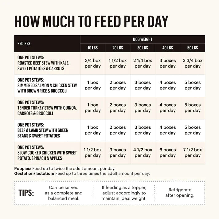 We believe that health starts with human grade, whole foods. We teamed up with a chef to make this chunky, hearty One Pot Stew with cage free turkey, quinoa, carrots, broccoli and a hint of sage. Serve this hearty wet food as a complete meal or healthy mix-in that helps boost your pup’s health and happiness from the inside out.