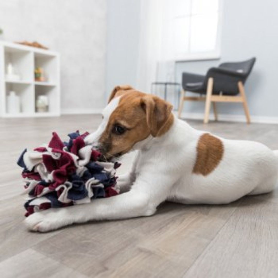 The Dog Activity Sniffing Ball toy from Trixie is a challenging and fun activity for your dog. Hide dry food or treats or in between the fleecy layers, and with a little dexterity using snout and paws, your pet will get its reward!