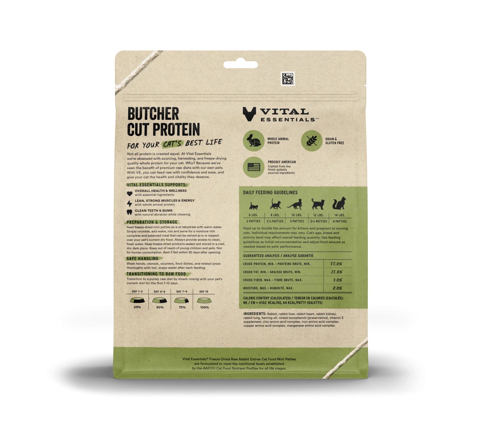 Vital Essentials Cat Freeze Dried Mini Patties Rabbit 8oz.