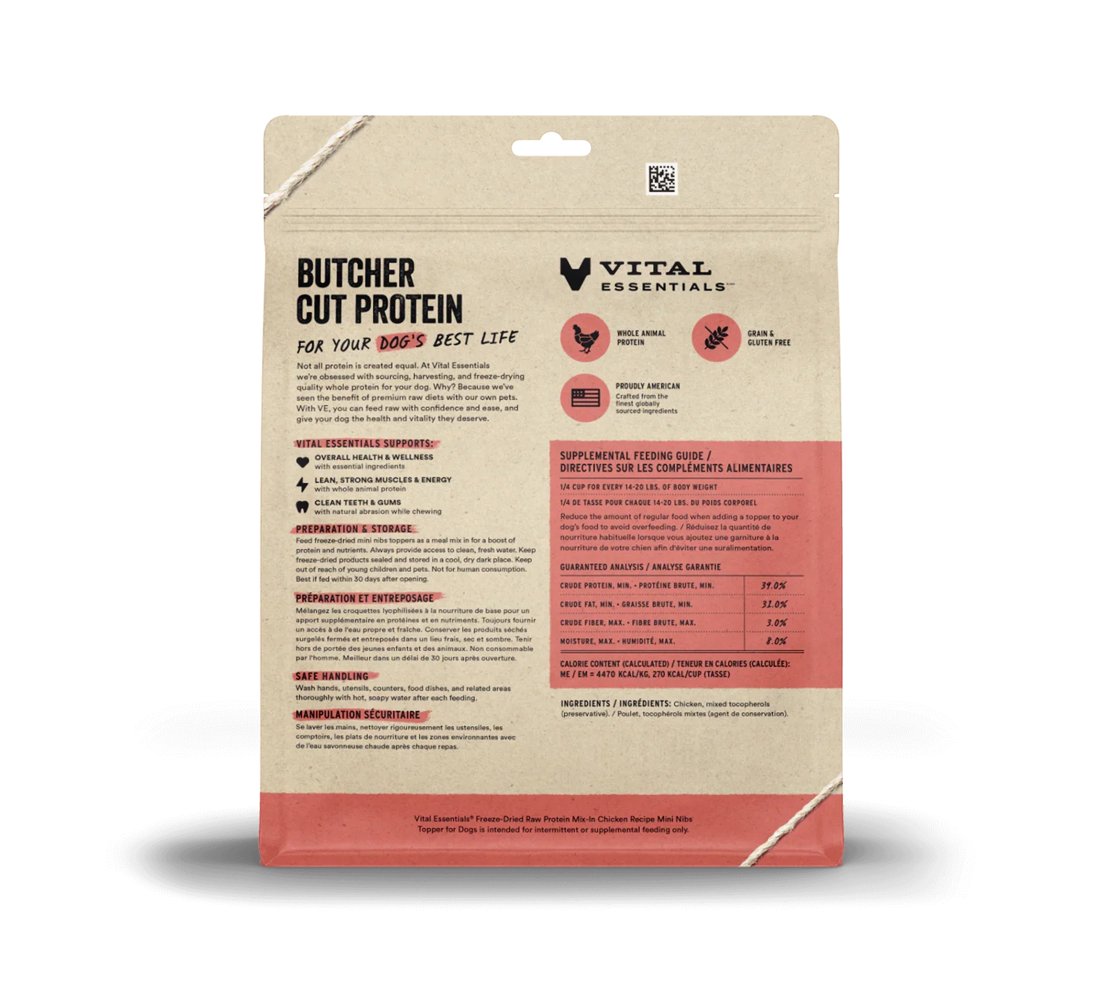 Vital Essentials Dog Freeze Dried Topper Chicken 18oz.
