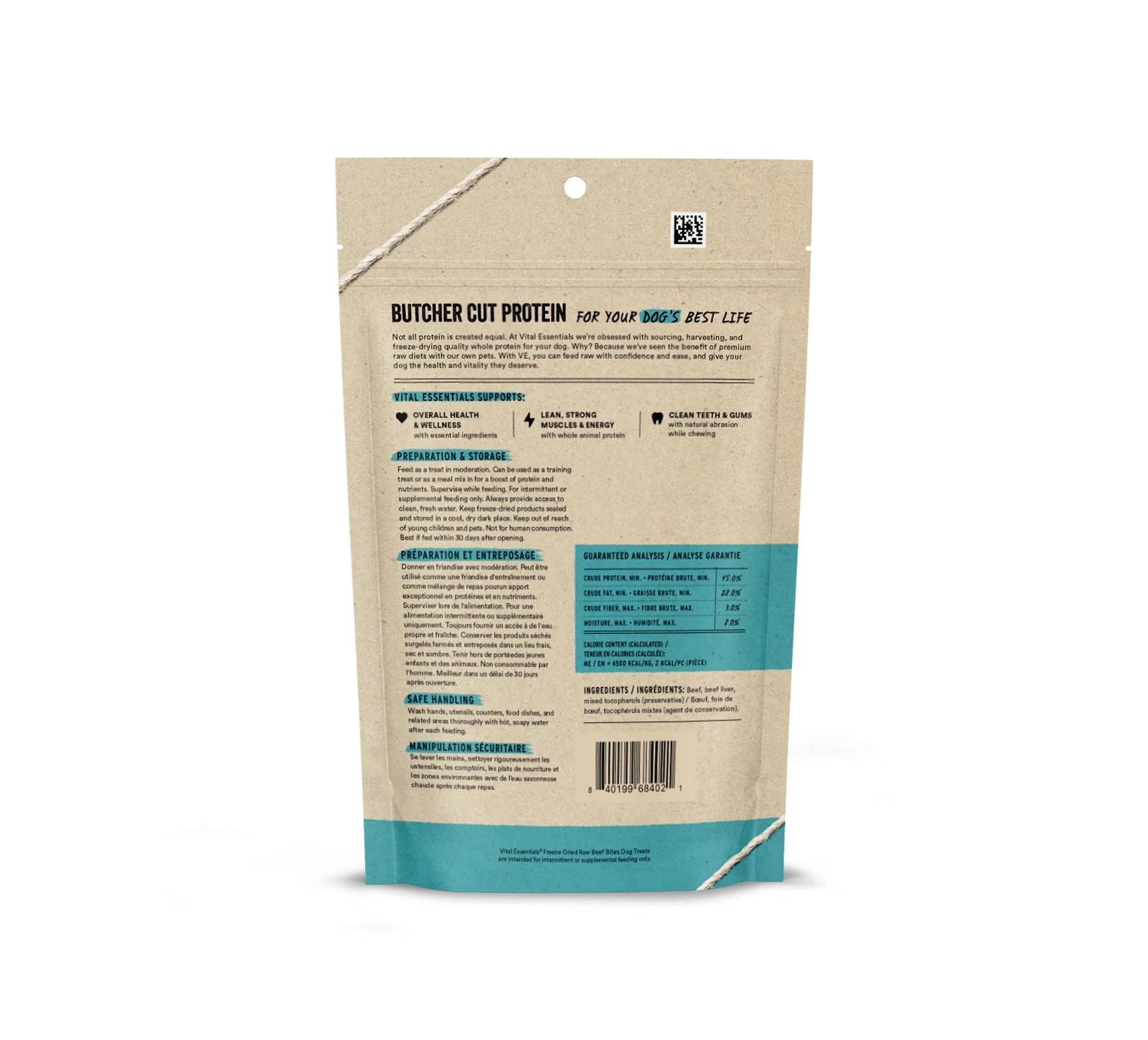 Vital Essentials Dog Freeze-Dried Treat Bites Beef 6.2oz.