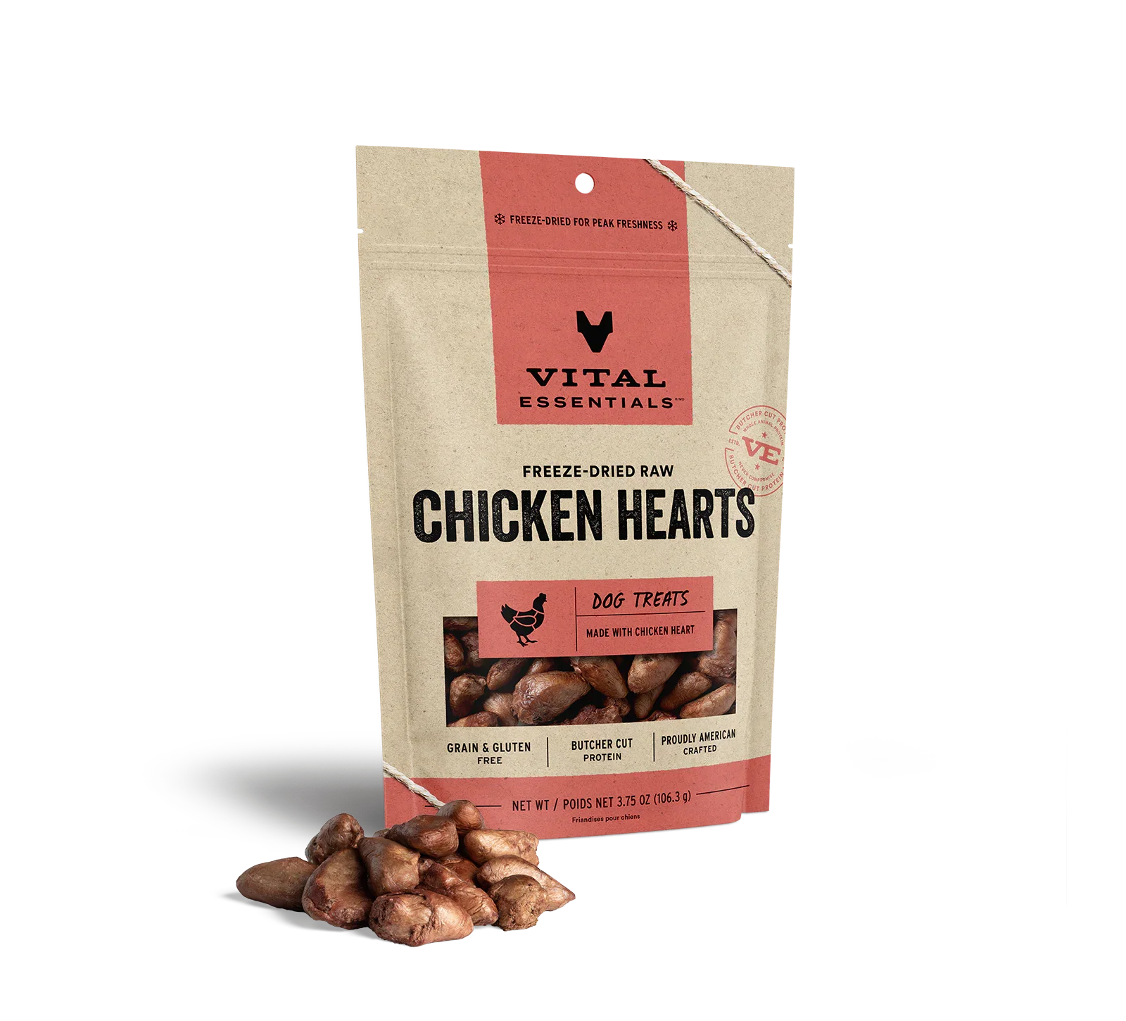 Vital Essentials Dog Freeze-Dried Treat Chicken Hearts 3.75oz.