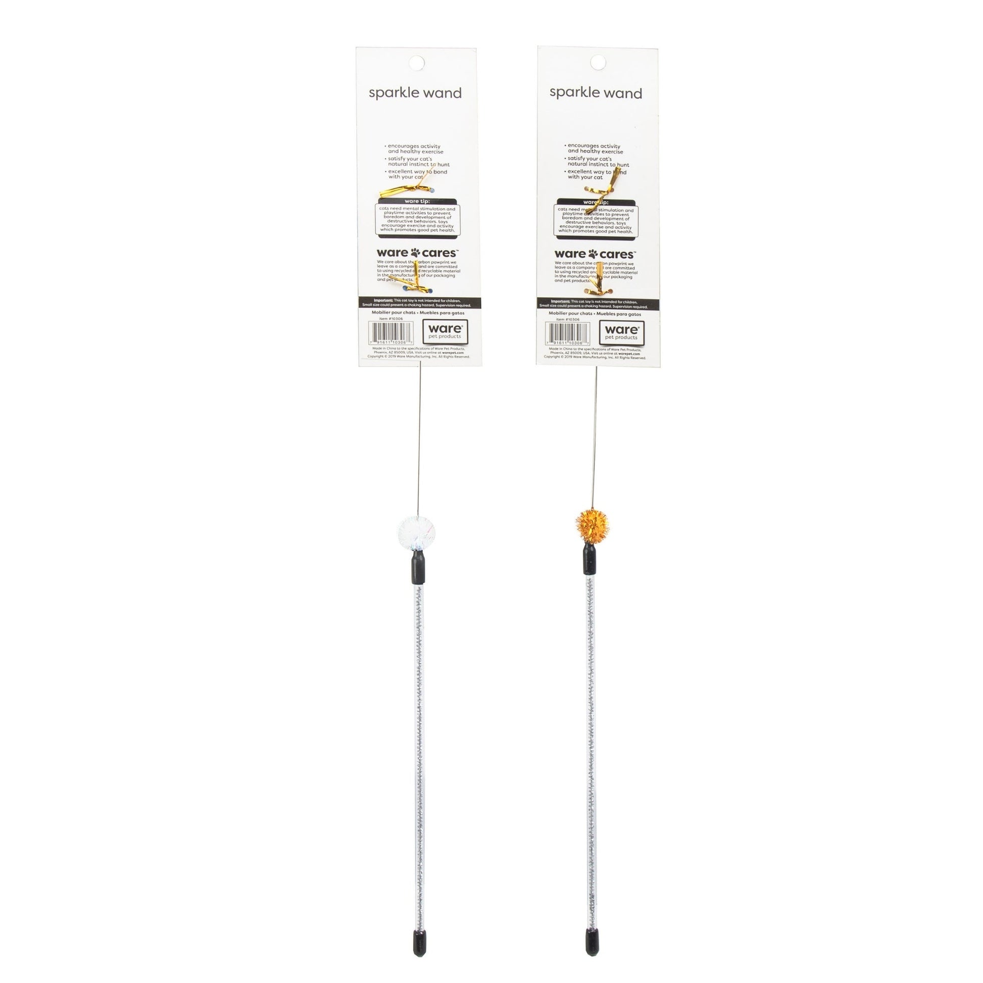 Provides a mix of tantalizeing textures that can bring out a felines playful, inquisitive nature. The colorful feather and vivbrant poly-film are perfect for gaining their attention. The wire and sparkly wand make playtime easy to control.