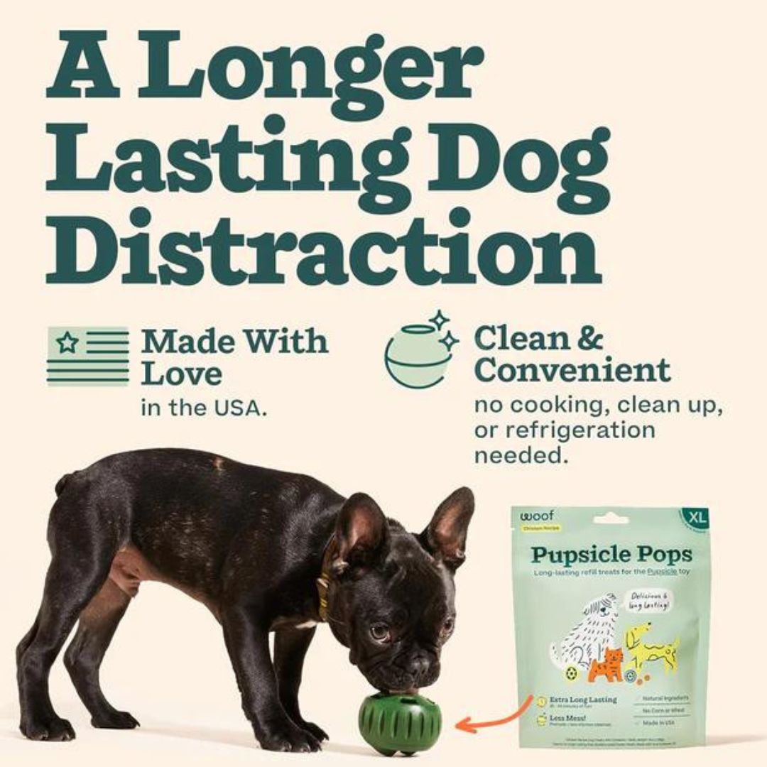 Pops = Peace. Pups of all shapes, sizes and ages love our Pupsicle Pops. They're long-lasting, mess-free, and convenient - take them anywhere!