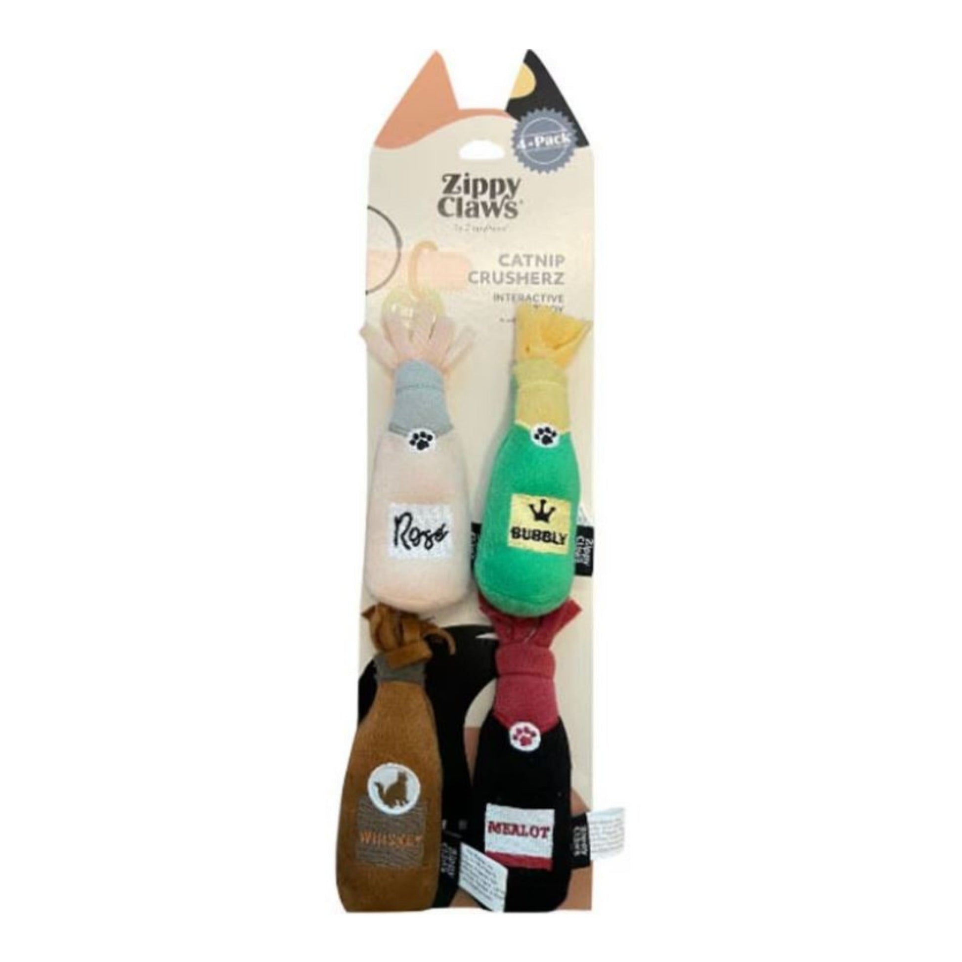 Zippyclaws Catnip Crusherz Rose/Bbbly/Whsky/Merlot Small-4 Pk